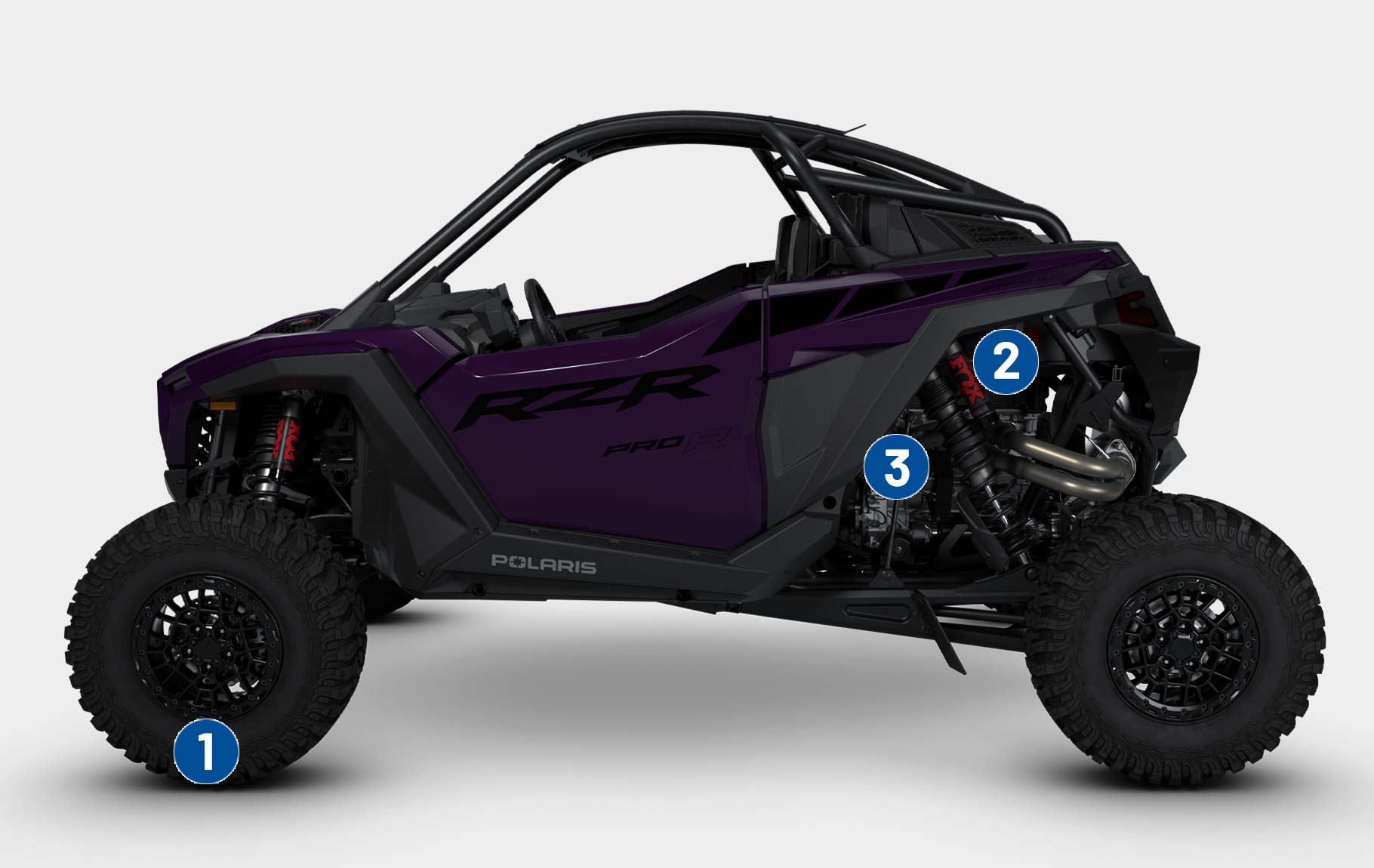 Entfessele eine Naturgewalt mit dem RZR Pro R, unserem leistungsstärksten RZR mit renn-erprobter Performance.